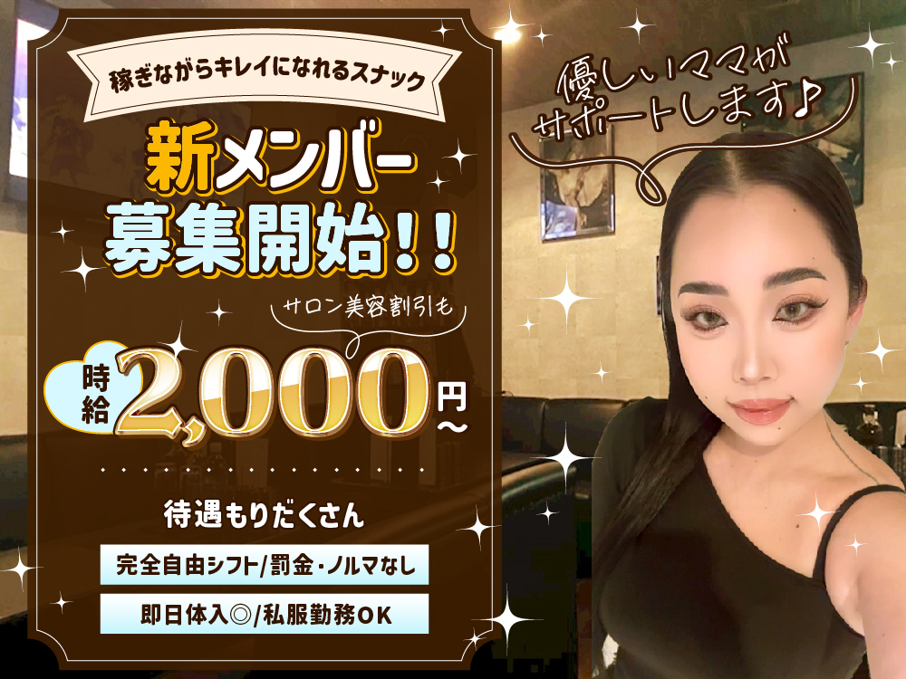 勝田台駅からスグの【スナック N's lounge】で、新しい仲間を大募集🥳 20代~40代の落ち着いた女性が活躍中で、綺麗なママが優しくサポートしてくれるから、ナイトワーク初心者さんも安心してください💖 紳士なお客様ばかりなので、居心地の良さはバッチリ👌 ノルマ・罰金は一切なし🙅♀️ 時給2,000円~の高待遇で次回出勤時全額払いもOK!💸 完全自由シフト制で、終電までもOKだから、あなたのライフスタイルに合わせて働けます⏰ 私服勤務で髪色・ネイルも自由✨ 学生さん、フリーターさん、Wワーク、シンママさん、みんな大歓迎🙌 まずは気軽に体験入店からどうぞ!