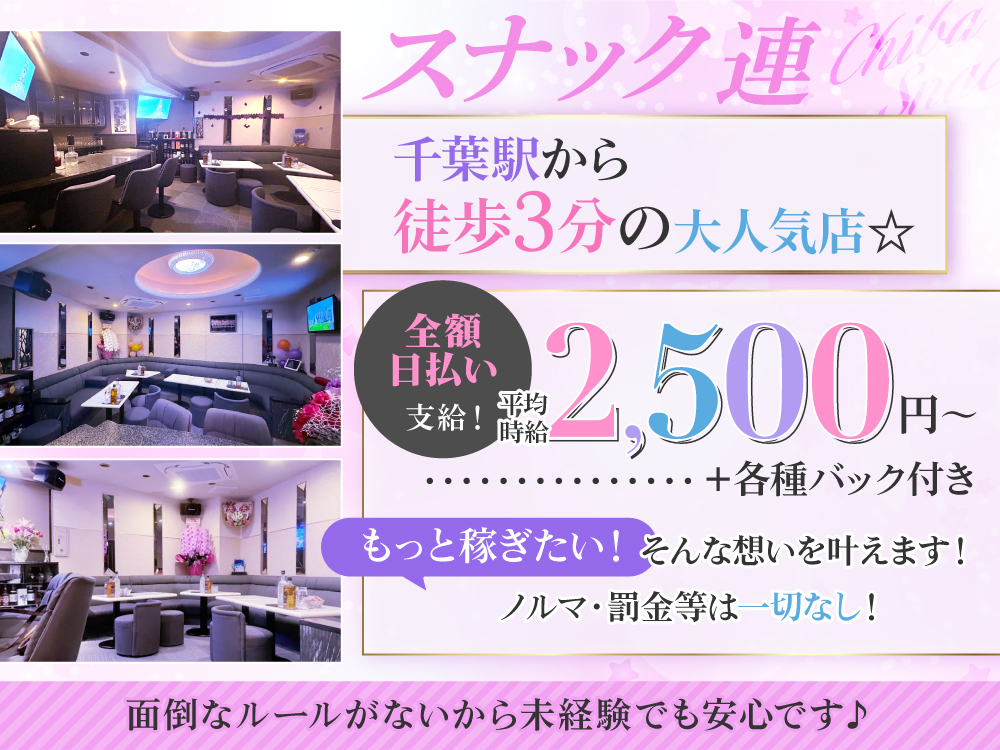 💖✨【パピヨン】は稲毛駅徒歩2分🚉 50周年の超老舗スナックだからお客様は優しい常連さんばかりで安心感が違います! 完全カウンター越し接客でノルマ・罰金なし🙅♀️ 時給2,000円〜で時給保証・日払いOKと高待遇💰 週1日3時間〜の完全自由シフト制で、私服OK、髪型・ネイル・タトゥーも自由💅! 20〜40歳が活躍中で、超優しいママがシフトもプライベートも相談に乗ってくれるから働きやすさバツグン😊💕 まずはお友達との応募や体験入店も大歓迎です!✨💖