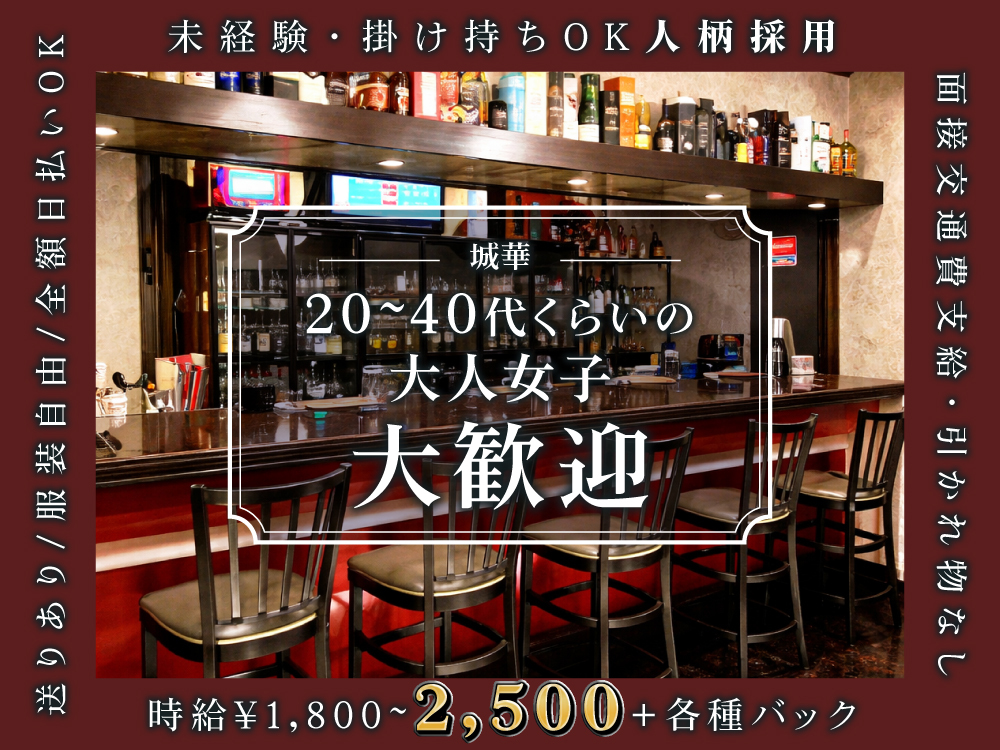 幕張本郷駅から徒歩3分!スナック『城華〜じょうか〜』で新規スタッフ大募集🌸時給1,800円〜2,500円+豊富なバック&ボーナスで稼ぎやすさ抜群💰完全自由シフトで週2日〜、3時間以内の短時間もOK!終電上がりや無料の送りもあるので安心です🌙ノルマ・罰金・営業電話・連絡先交換は一切なし!ピアスやネイルも自由で、ノンアル接客もOKです🍹未経験者さんも、友達同士の応募も大歓迎✨まずは全額日払いの体入へお越しください!💌💖