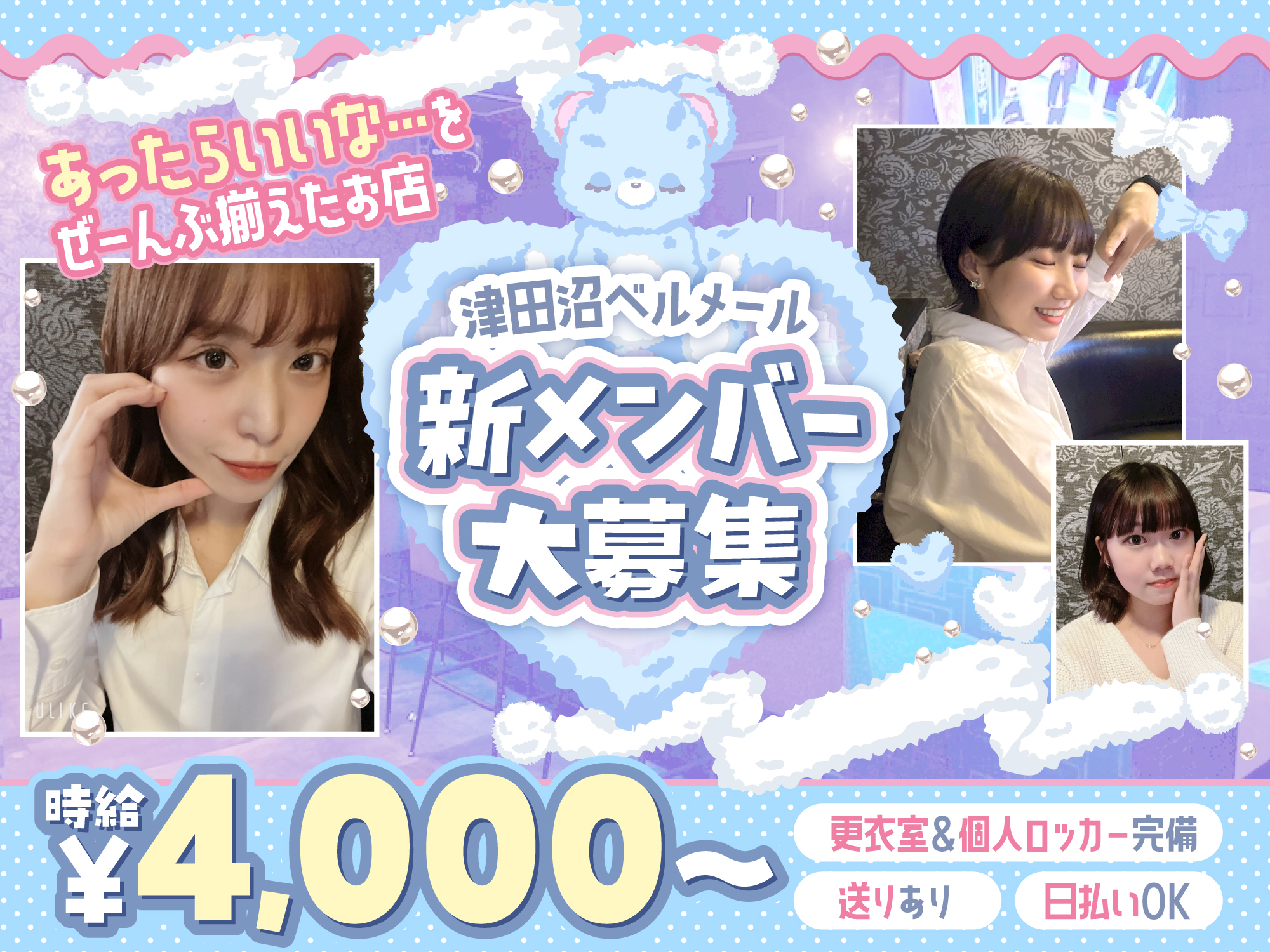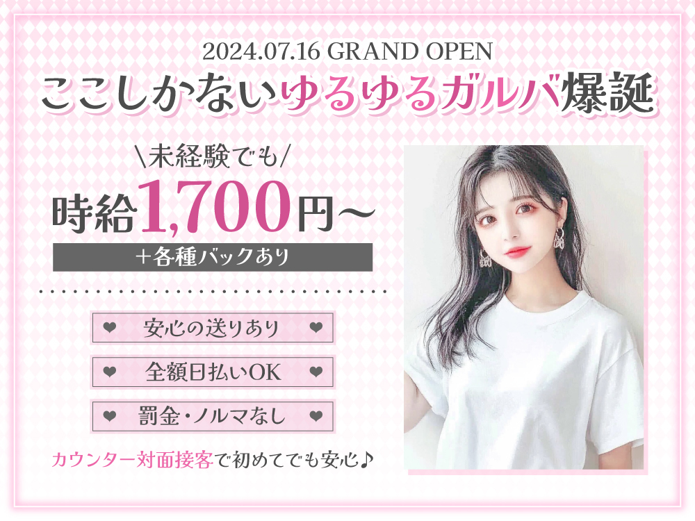 🎉2024年7月16日オープンの『Girls Lounge 502』では、オープニングメンバーを大募集しています🎈未経験でも安心して始められる環境で、年齢や経験は一切不問💜お仕事内容は、お酒を作ったり楽しくおしゃべりするだけ❣服装は自由で、髪型やネイルもOK🙆さらに、送りも完備されているので深夜でも安心🚗✨時給は1,700円~で、全額日払い対応💰興味があれば、今すぐ体験入店へGO💕