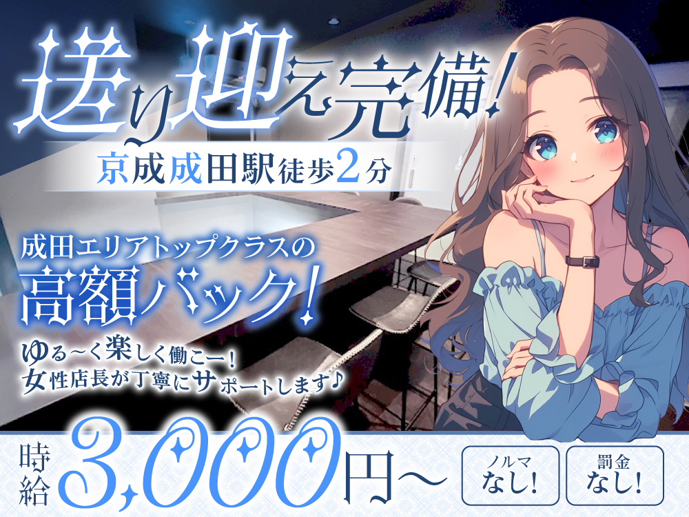 無料の送り迎えがあり🚗💨通勤の心配ゼロのGirls Bar niche-ニッチ-は2024年4月にオープンしたばかり!✨京成成田駅から徒歩2分、成田駅から徒歩5分の駅チカ立地で働きやすい環境🎉お仕事内容はドリンクの簡単な作成🍹とお客様との楽しいおしゃべりだけ♪💬時給は体入3,000円~、入店2,000円~3,000円💸ドリンクバックや指名バックもあり、がんばり次第でお給料アップも期待できます📈衣装はシンプルなYシャツスタイルで、露出が苦手な方でも安心😊未経験者歓迎🔰ノルマなし、フレンドリーなキャストと女性店長のサポートで初心者さんでも安心して働けます💖まずは体験入店から👍