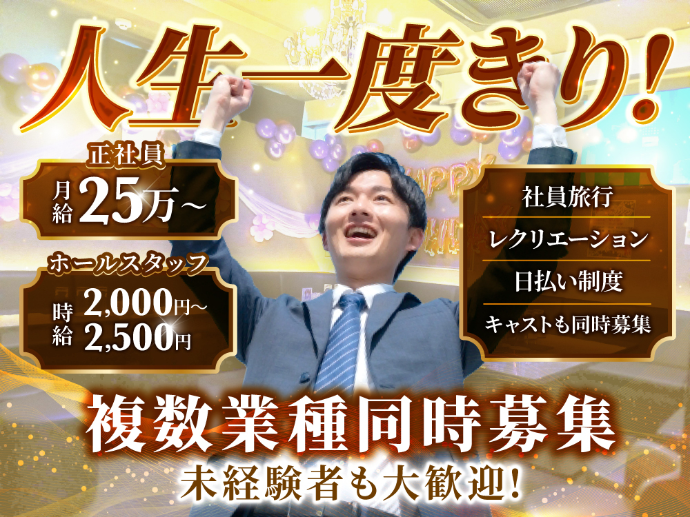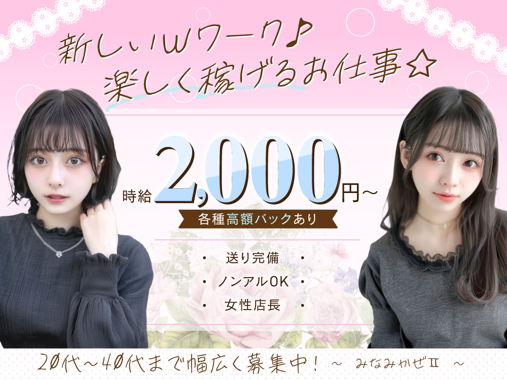 ★容姿・経験・年齢一切不問★スナック みなみかぜⅡでは、20代から40代の女性が幅広く活躍中!フリーターや主婦、パート・アルバイトの方など様々な層が働いています👯未経験者積極採用中で、経験者には優遇あり◎完全自由シフト制で週1日~/1日3時間~勤務OK🙆駅チカでお客様の層も良く、安心して働ける環境です✨ノルマ・罰金なし、プライベートもしっかり確立できます🚫時給2,000円以上+各種バックあり💰体験入店も随時受付中!履歴書不要で気軽に応募可能です👀
