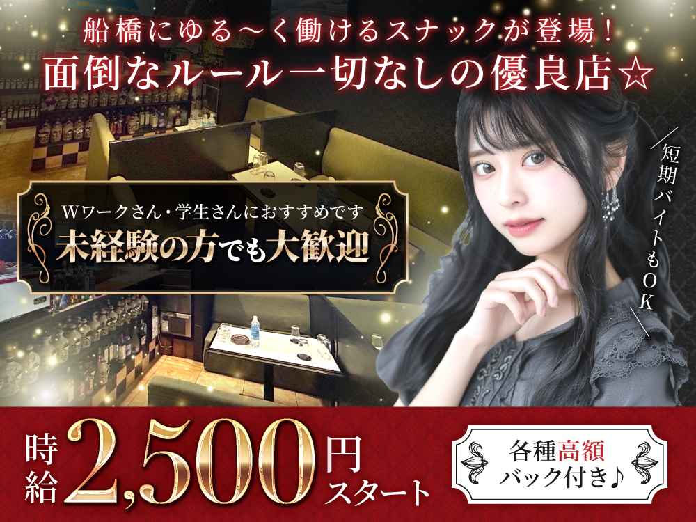 西船橋で人気急上昇中の「スナック AYA」では、新規メンバーを大募集しています🎉✨中央・総武緩行線や武蔵野線、京葉線、東京メトロの東葉高速線からアクセス抜群の駅近なので通いやすいです🚆✨AYAは西船で一番のカラオケ機を導入しており、キャストは使い放題🎤スナックなので連絡先交換の強制なし!時給は未経験でも2,200円から💰全額日払いOKで自由なシフト制だから、自分のライフスタイルに合わせて働けます🎵ノルマや罰金もなく、ストレスフリーな環境で楽しくお仕事しませんか?💖興味がある方はぜひご応募ください🌟