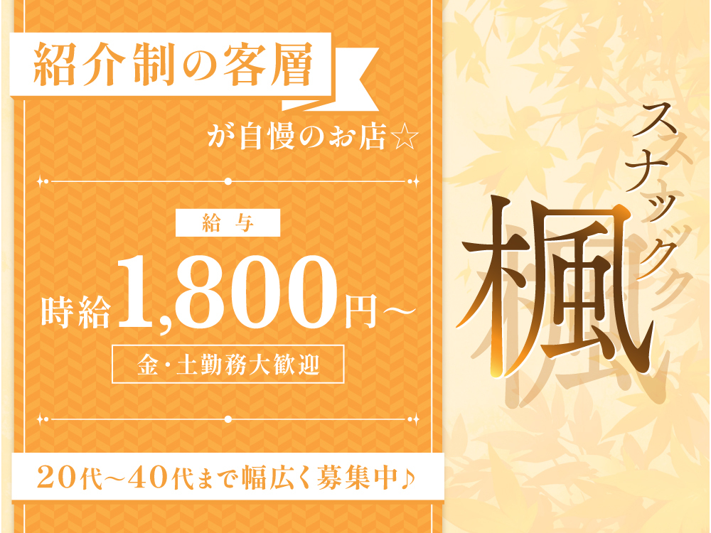 勝田台で40年の歴史を持つスナック楓🍁完全紹介制のお店🤍ノルマや罰金一切なし🚫未経験者も時給1800円からスタート💰無料送迎&マイカー通勤のサポートもあり🚙お仕事はお客様との楽しいお話とドリンク作り🍸✨服装や髪型も自由なので自分らしく働けます👚経験や年齢を問わず優しいスタッフがサポートするため初心者も安心してスタートできますよ🌟