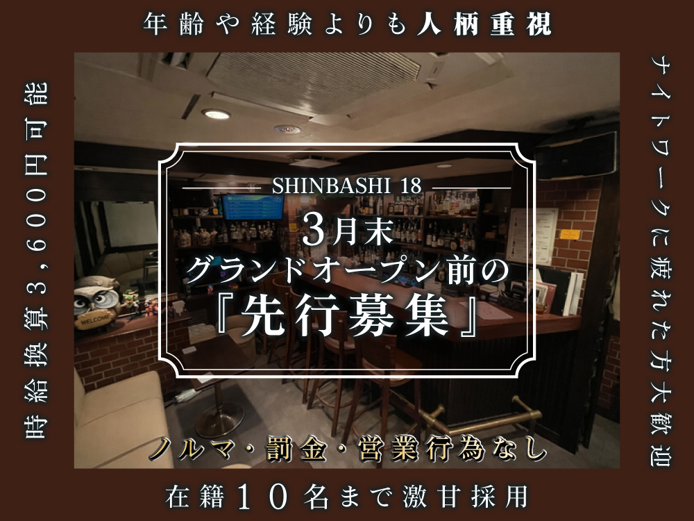 新橋の「Bar 18〜イチハチ〜」は、20代〜40代のオトナ女子が主役のガールズバーです🍸✨ 在籍全員がWワーク中で、会社バレ対策もバッチリ! ノルマや連絡先交換、お酒の強制も一切なく、居酒屋感覚でゆるく働けます🍀 待機中も時給が発生し、全額日払いOKなので安定して稼げるのが魅力💸 私服勤務・終電上がり・送り完備と、女の子の生活リズムを最優先🚗💨 ナイトワーク未経験の方にこそ選んでほしい、頑張らなくていいお店です🎵 まずは手ぶらで体験入店へお越しください!👭💕