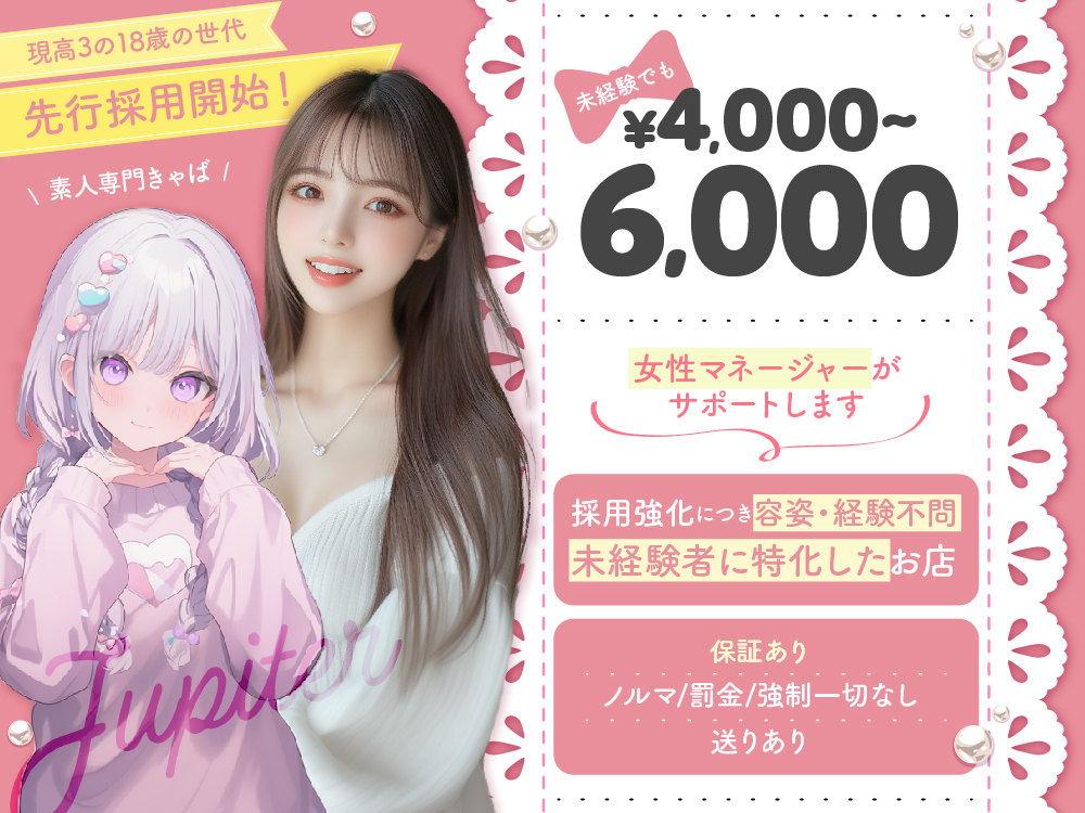「Club Jupiter〜ジュピター〜」は、ナイトワーク未経験の方にぴったりなお店✨アルバイト初めての方でも安心の研修・サポート体制が整っているので、不安なくスタートできます😊お仕事内容は簡単なドリンク作りやお客様との楽しいお話が中心で、ノンアル接客もOK🍹時給4,000円〜6,000円と高収入で、全額日払い対応だから急な出費にも安心💰ドレスレンタル無料や送りサービスも完備🚗ぜひ気軽に体験入店から始めてみてください🌸