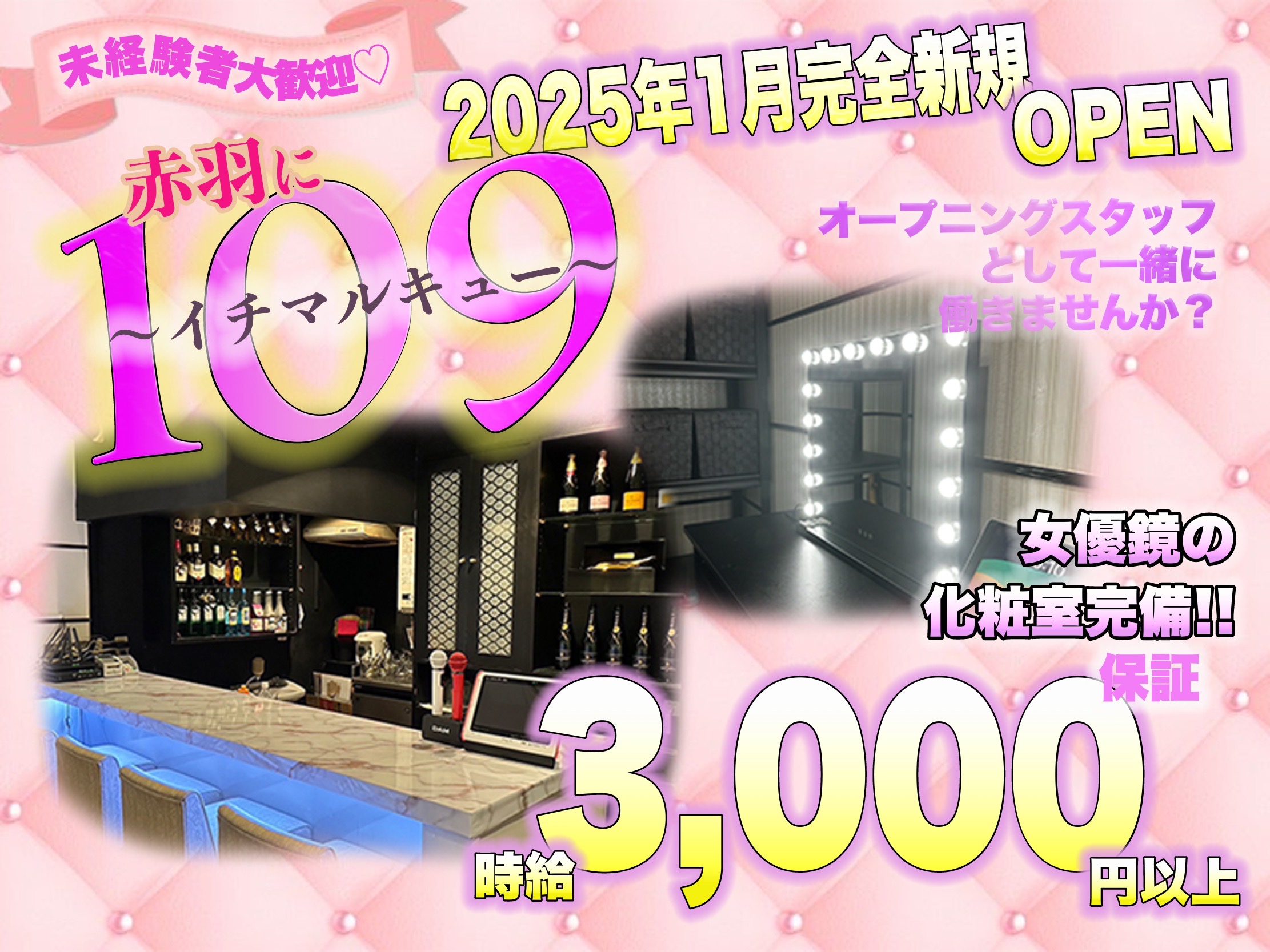 ✨赤羽駅近くに12月6日 新規オープン✨ 2024年12月6日の新規OPENに向けて... ただいまオープニングスタッフを大募集中🐣💕 オープニング1期生の先行面接がスタート💕 新規オープンのため 『現在女の子は0名です😭😭』 オープニングの今だけはなんと!! 面接に来てくれた先着20名の女の子を ✨必ず"全員採用"をお約束✨ 正真正銘のNEW OPEN店のため 〈上下関係〉や〈派閥〉など一切なく 女の子同士皆んなスタートが一緒です🐣💕 現在はOPENに向けて 内装などを綺麗に整え中💗 そんなコンカフェで 第1期生で働いてみませんか??