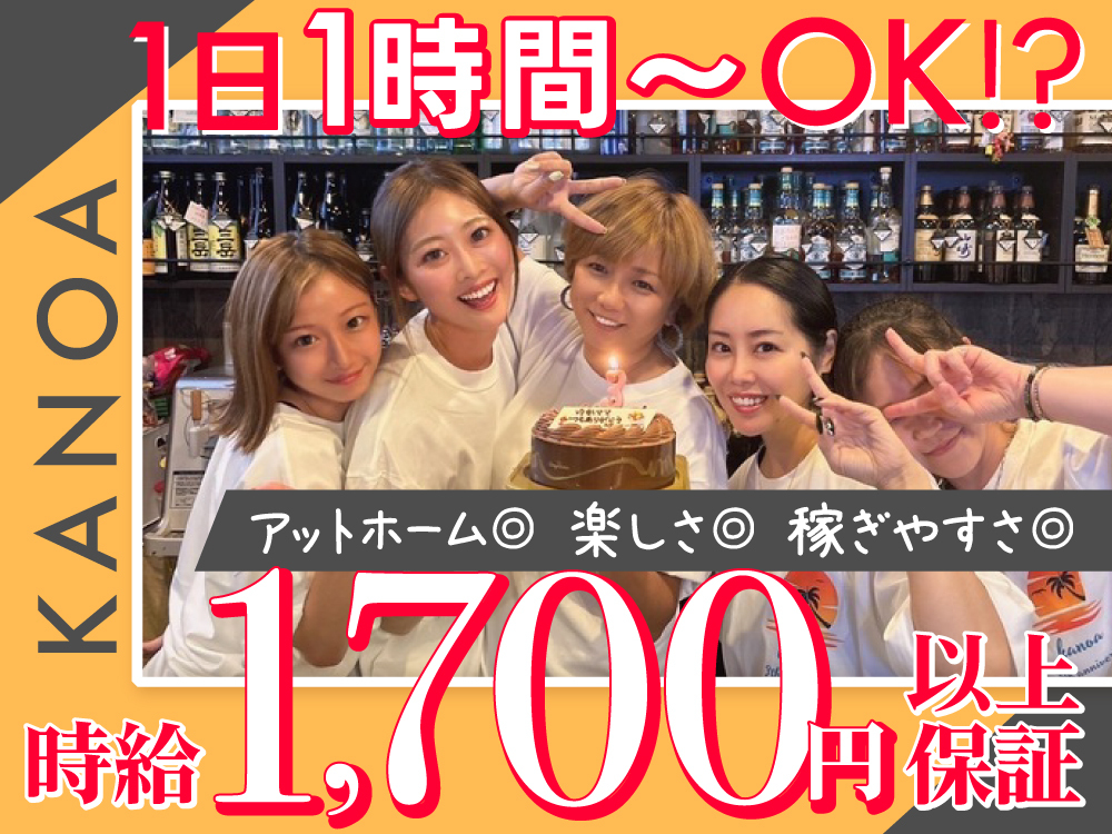 【Bar Kanoa🏝️】で、 ゆったり楽しくお仕事しませんか?🌺 未経験の方も大歓迎! お仕事はお客様のお酒を作って、 カウンター越しに会話を楽しむだけ。 トラブルの心配はなし❌ 私服OKで、髪型やネイルも自由だから、 おしゃれを楽しみながら働けます👚✨ 交通費は全額支給! さらに週1日、1日1時間から働けるので、 忙しい学生さんやWワークの方も安心です🌈 ノルマなしで、ストレスフリーに働ける環境で 体験入店も大歓迎!🌞
