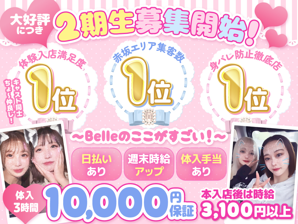 赤坂見附のガールズバー「Belle」で、楽しくゆる~く稼ぎませんか?✨Belleはギラギラした雰囲気がなく、女の子同士も仲良しなので、初心者さんでも安心して働けます😊露出の少ないミニワンピースの可愛い衣装が用意されているので私服の心配もなし🎀未経験でも愛嬌があればOK!寮完備で、自由シフトだからプライベートを優先しながら稼げますよ💖時給3,100円以上、体験入店で3時間1万円と好条件。まずは体験入店してみませんか?