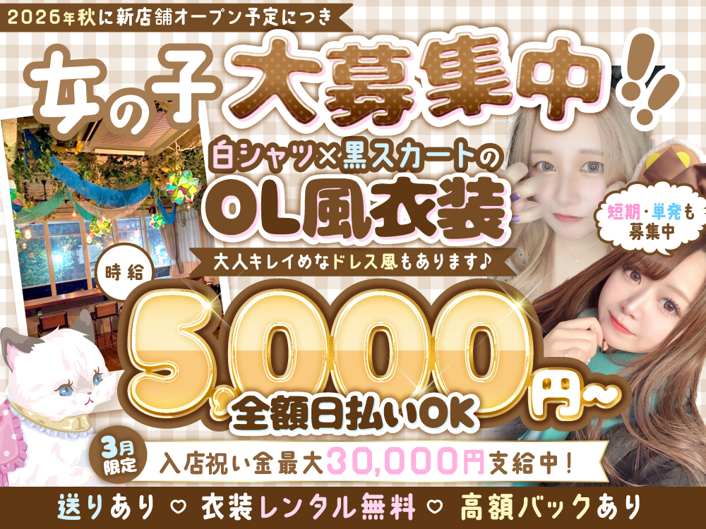 🎊完全新規オープン🎊第一期生大募集🤍可愛い制服でお給仕しませんか?🎀ビラ配りなしで安心🍀