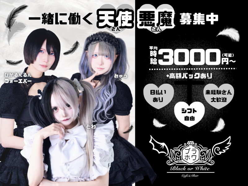 💖黒と白のカワイイ衣装のコンカフェがNEW OPEN💖昼15時から働けちゃう✨時給1300円以上💕