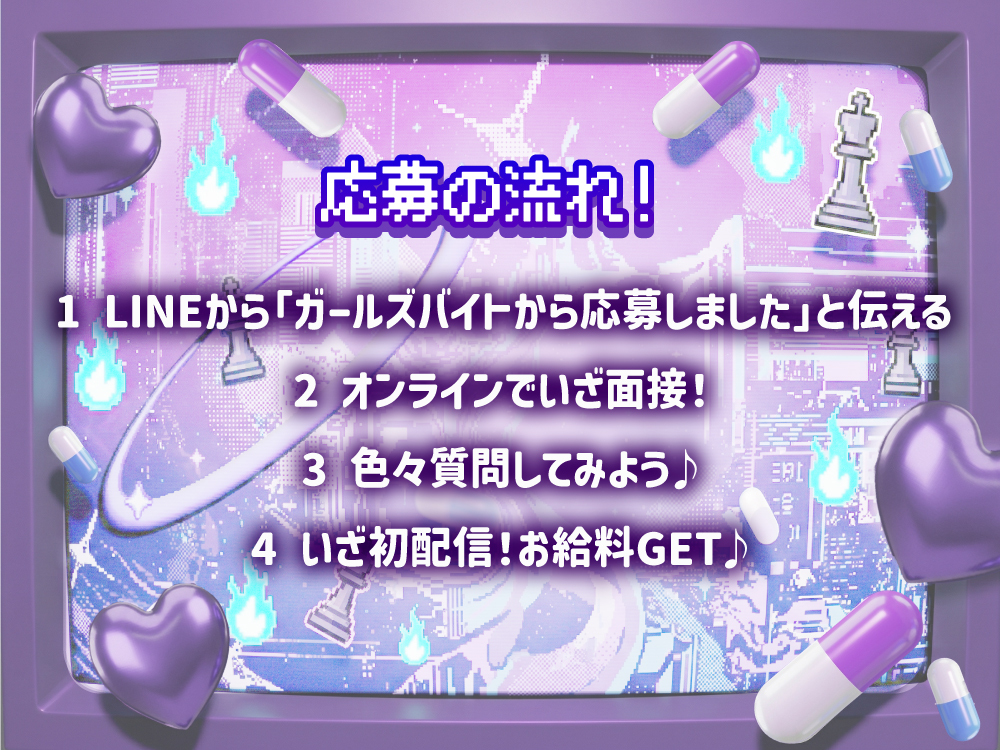 「ガールズバイトからの応募」で即採用!💌🌈✨24時間好きな時に配信OK🎶加工アプリ◎