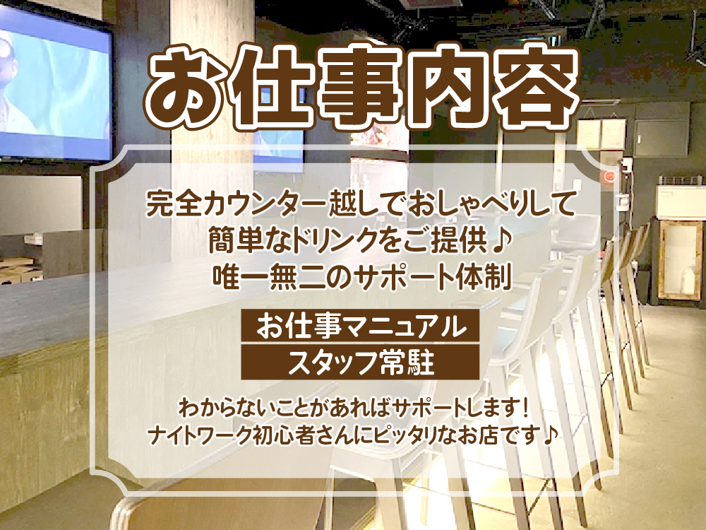 未経験者歓迎、 経験者優遇、 Wワーク歓迎、 週1出勤OK、 月1出勤OK、 終電あがりOK、 土曜日営業、 日曜日営業、 祝日営業、 送りあり、 ニューオープン、 寮完備、 託児所あり、 個人ロッカーあり、 連絡先交換なし、 駅から5分以内、 お酒飲めなくてもOK、 女性店長、 友達と応募OK、 即日勤務可能審査確認情報