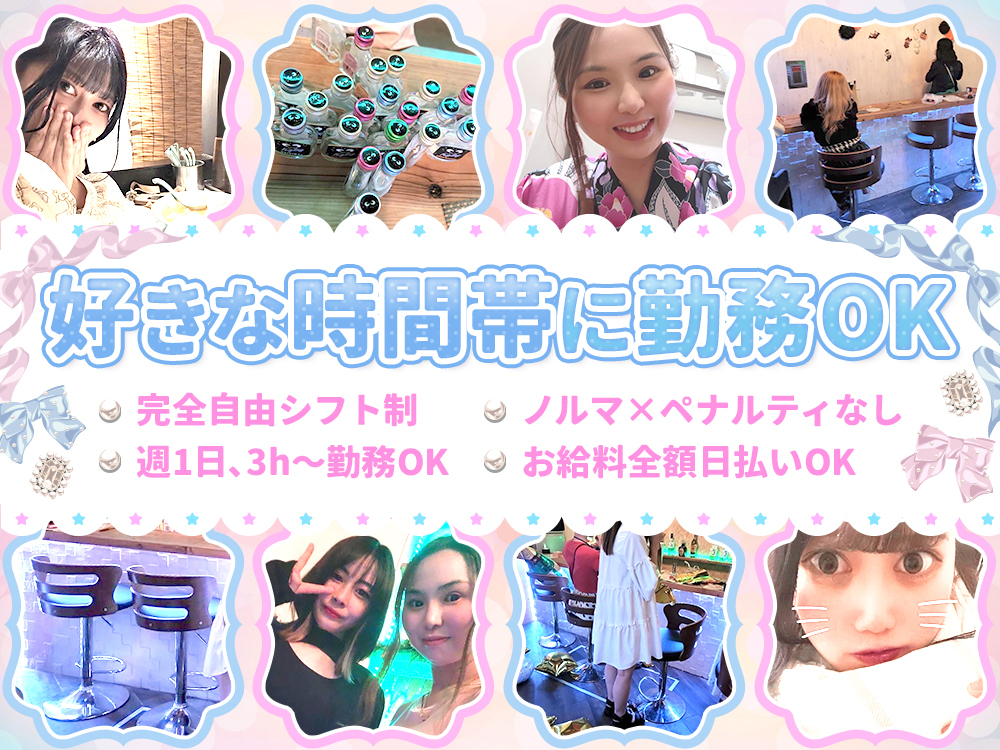 ドレスレンタルあり、 ヒールレンタルあり、 制服あり、 私服勤務OK、 ヘアメイクあり、 髪色自由でOK、 アクセサリーOK、 ピアスOK、 タトゥーOK働きやすさのメリット