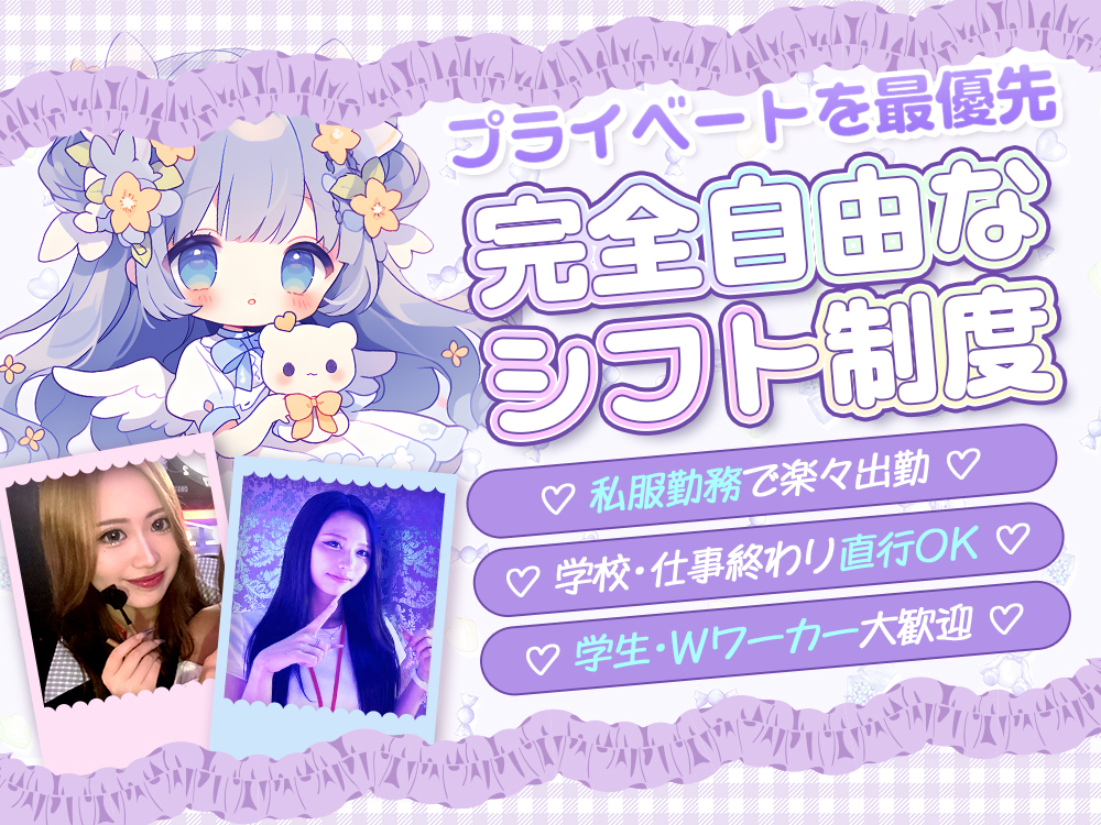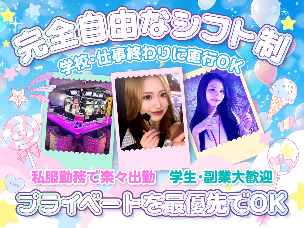 ドレスレンタルあり、 ヒールレンタルあり、 制服あり、 私服勤務OK、 ヘアメイクあり、 髪色自由でOK、 アクセサリーOK、 ピアスOK、 タトゥーOK働きやすさのメリット