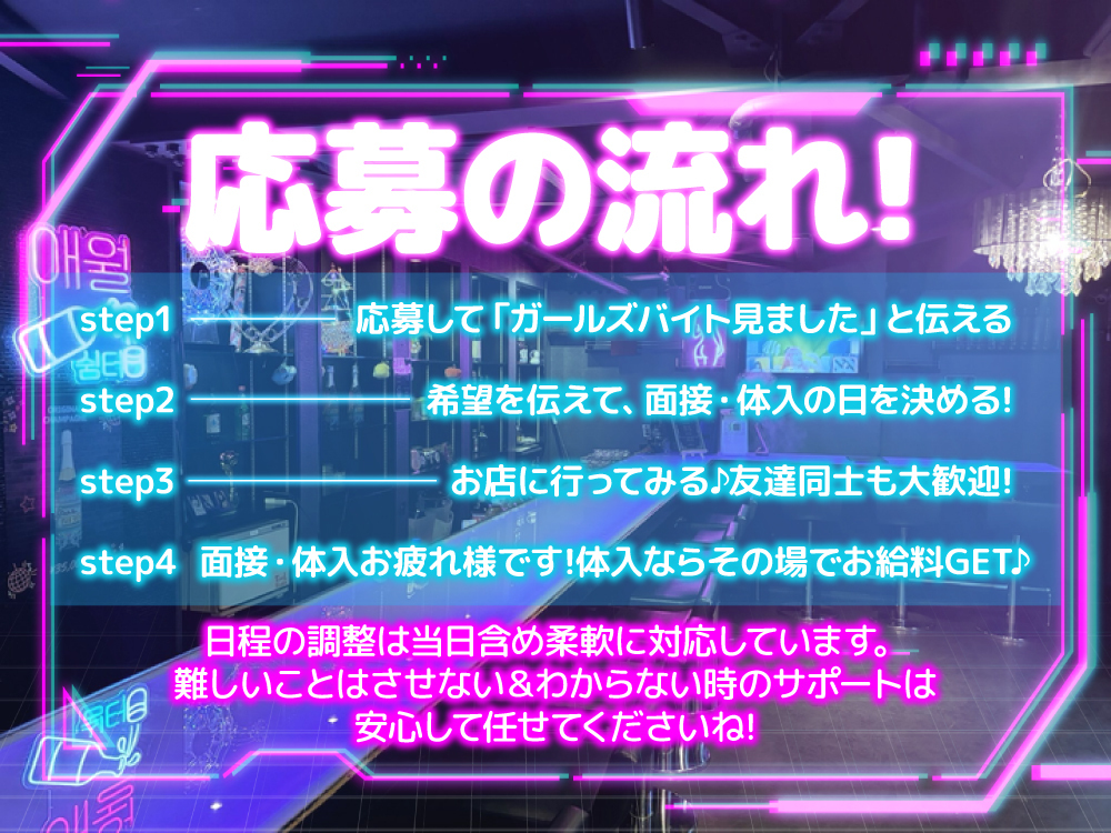 未経験者歓迎、 経験者優遇、 Wワーク歓迎、 週1出勤OK、 月1出勤OK、 終電あがりOK、 土曜日営業、 日曜日営業、 祝日営業、 送りあり、 ニューオープン、 連絡先交換なし、 駅から5分以内、 お酒飲めなくてもOK、 友達と応募OK、 即日勤務可能審査確認情報