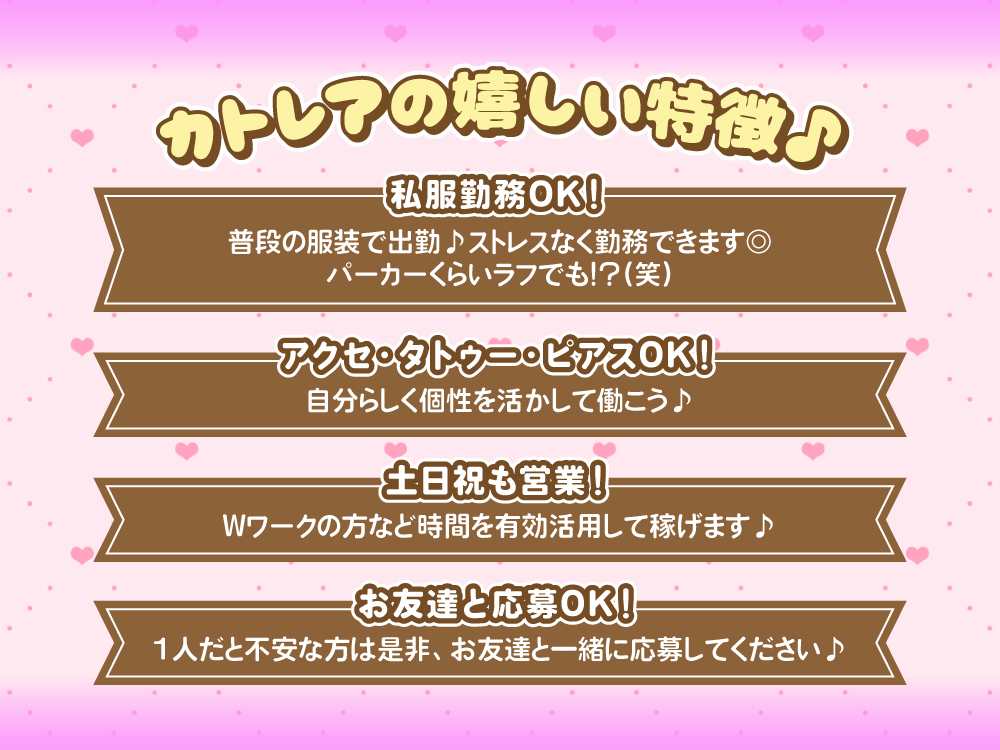 未経験者歓迎、 経験者優遇、 Wワーク歓迎、 週1出勤OK、 月1出勤OK、 土曜日営業、 日曜日営業、 祝日営業、 個人ロッカーあり、 お酒飲めなくてもOK、 友達と応募OK、 即日勤務可能審査確認情報