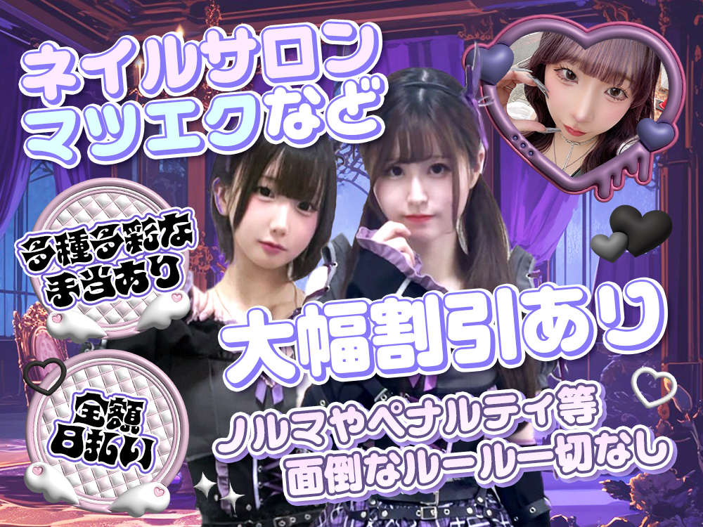 全額日払いOK、 ドリンクバックあり、 昇給あり、 入店祝い金あり、 罰金なし、 ノルマなし、 交通費支給身なりのメリット