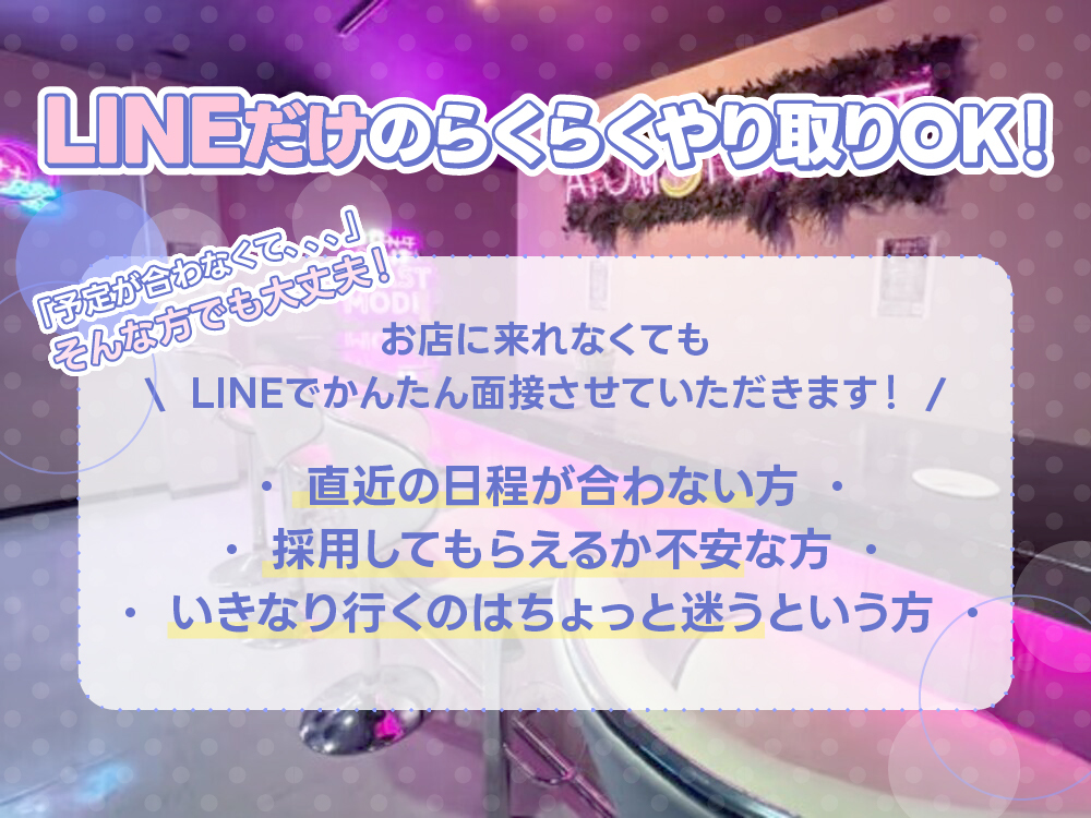 未経験者歓迎、 経験者優遇、 Wワーク歓迎、 週1出勤OK、 月1出勤OK、 終電あがりOK、 土曜日営業、 日曜日営業、 祝日営業、 送りあり、 ニューオープン、 家賃補助あり、 個人ロッカーあり、 連絡先交換なし、 駅から5分以内、 お酒飲めなくてもOK、 女性店長、 友達と応募OK、 即日勤務可能審査確認情報