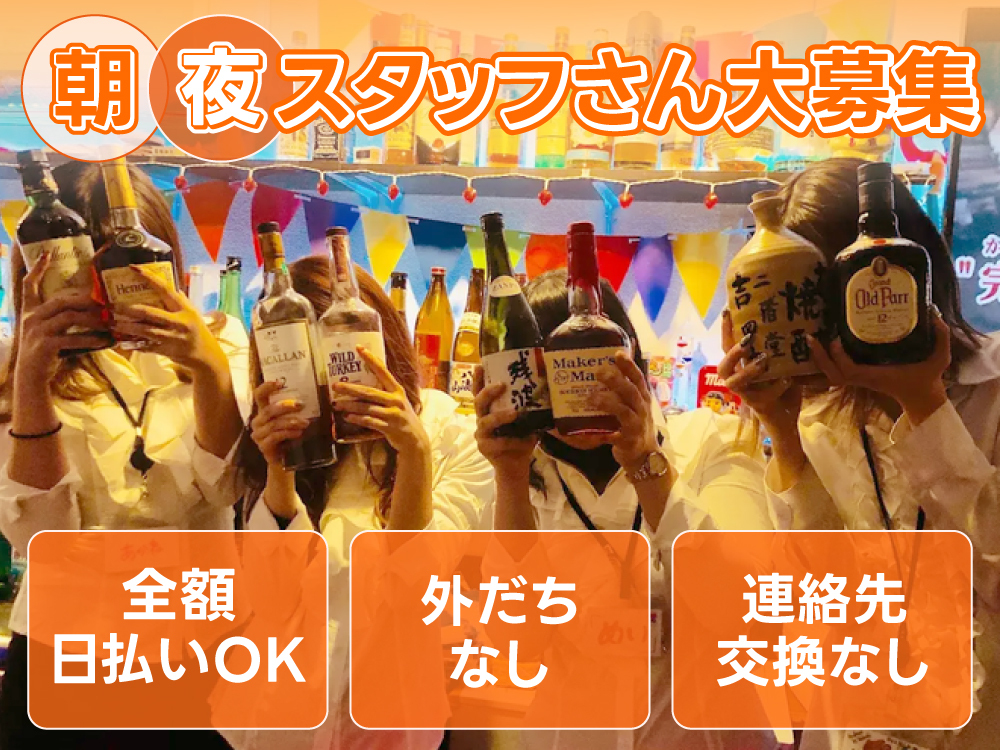 未経験者歓迎、 経験者優遇、 Wワーク歓迎、 週1出勤OK、 月1出勤OK、 終電あがりOK、 土曜日営業、 日曜日営業、 祝日営業、 ニューオープン、 連絡先交換なし、 駅から5分以内、 お酒飲めなくてもOK、 友達と応募OK、 即日勤務可能審査確認情報