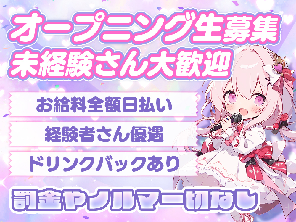未経験者歓迎、 経験者優遇、 Wワーク歓迎、 週1出勤OK、 月1出勤OK、 終電あがりOK、 土曜日営業、 日曜日営業、 祝日営業、 送りあり、 迎えあり、 面接交通費支給、 ニューオープン、 家賃補助あり、 寮完備、 託児所あり、 個人ロッカーあり、 連絡先交換なし、 駅から5分以内、 お酒飲めなくてもOK、 女性店長、 友達と応募OK、 即日勤務可能審査確認情報