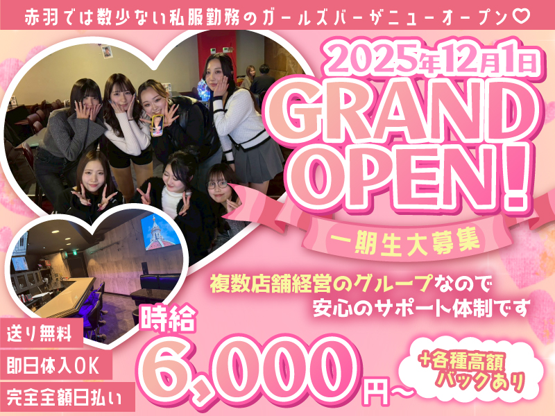赤羽に私服ガルバがGRAND OPEN💛時給6,000円~+各種高額バック🍾送り無料🚗