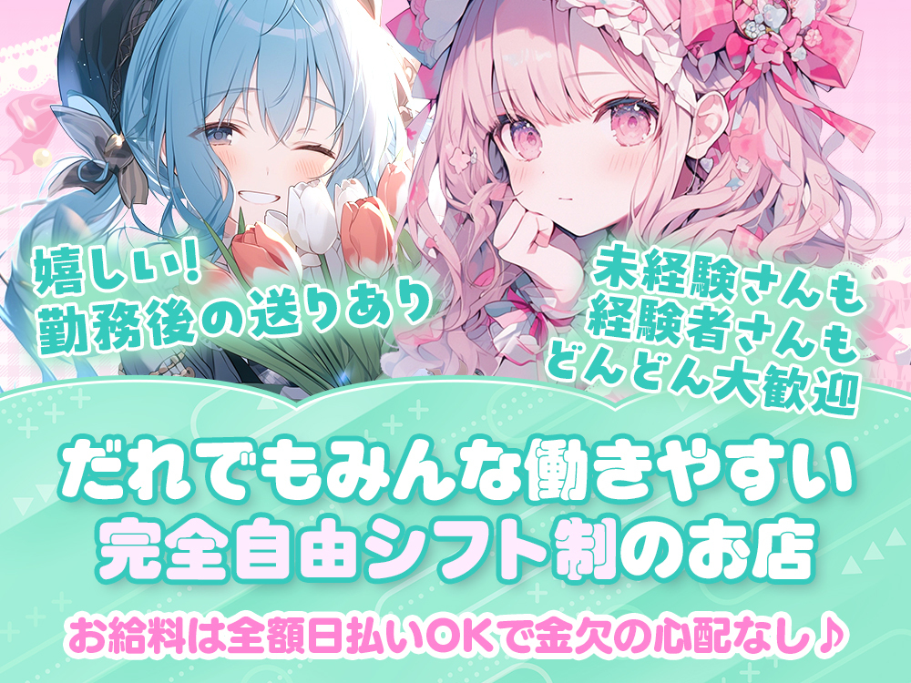 未経験者歓迎、 経験者優遇、 Wワーク歓迎、 週1出勤OK、 月1出勤OK、 終電あがりOK、 土曜日営業、 日曜日営業、 祝日営業、 送りあり、 面接交通費支給、 ニューオープン、 寮完備、 個人ロッカーあり、 連絡先交換なし、 駅から5分以内、 お酒飲めなくてもOK、 女性店長、 友達と応募OK、 即日勤務可能審査確認情報